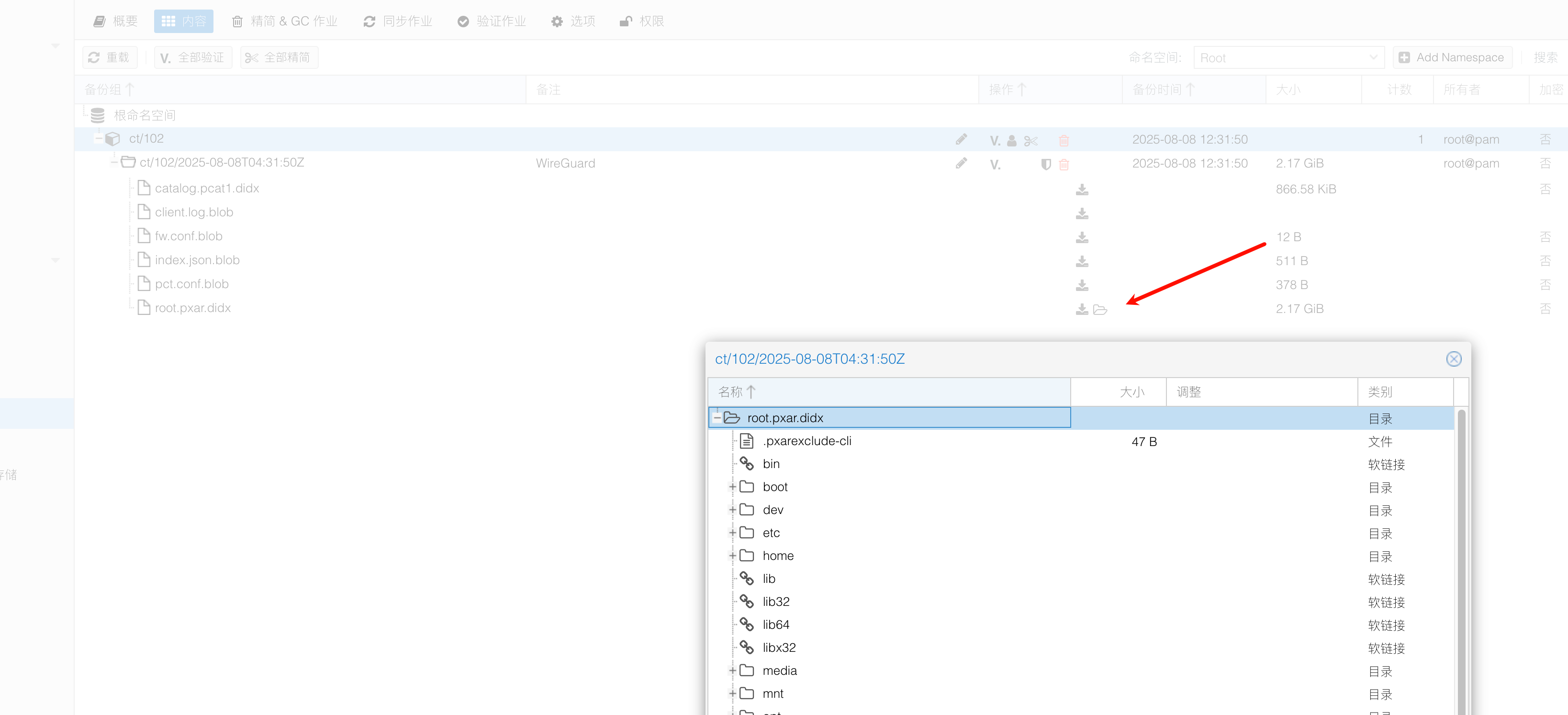 还有一点比较重要的是,PBS可以对备份虚拟机的文件进行浏览,当我们只需要找回虚拟机某个被删除的文件时候不用完全还原整个虚拟机,
