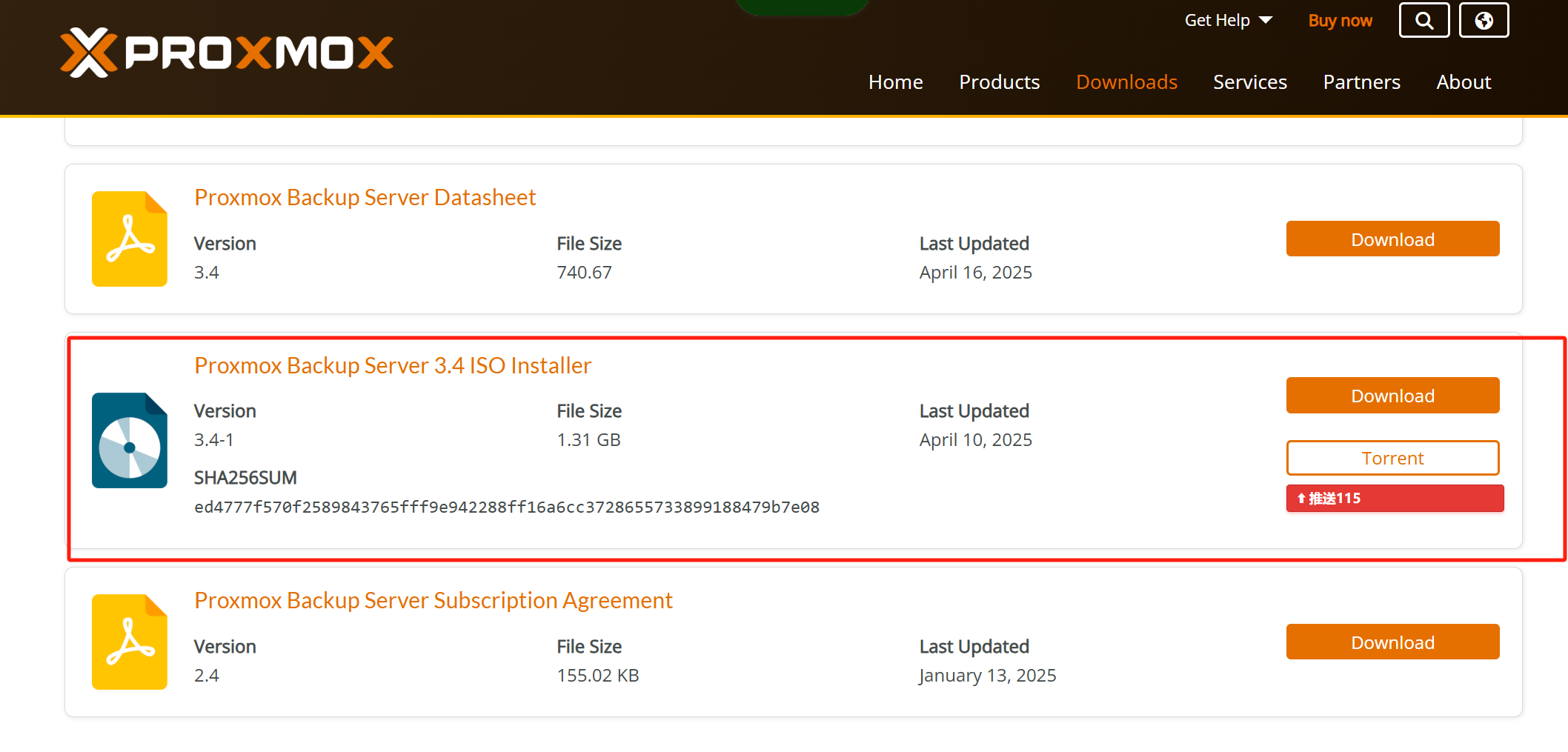 1、PVE官方提供PBS镜像下载,点击下面图片即可实现跳转。