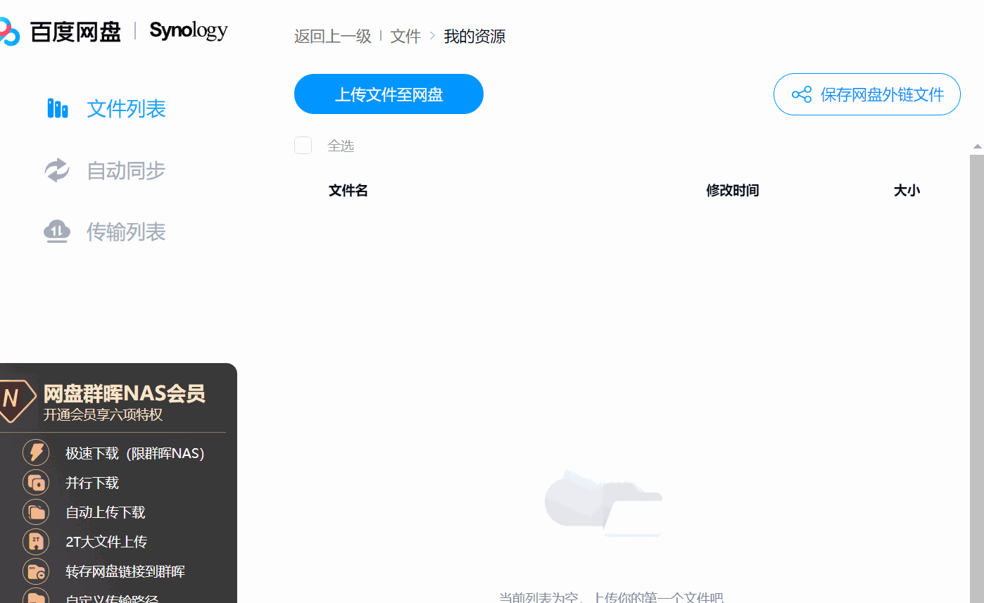 3、登录完成之后页面如下,果然百度还是那个百度,硕大的网盘群晖NAS会员映入眼帘。