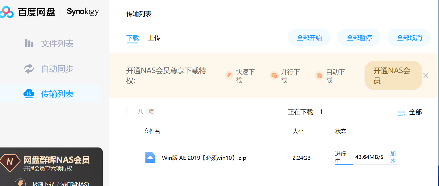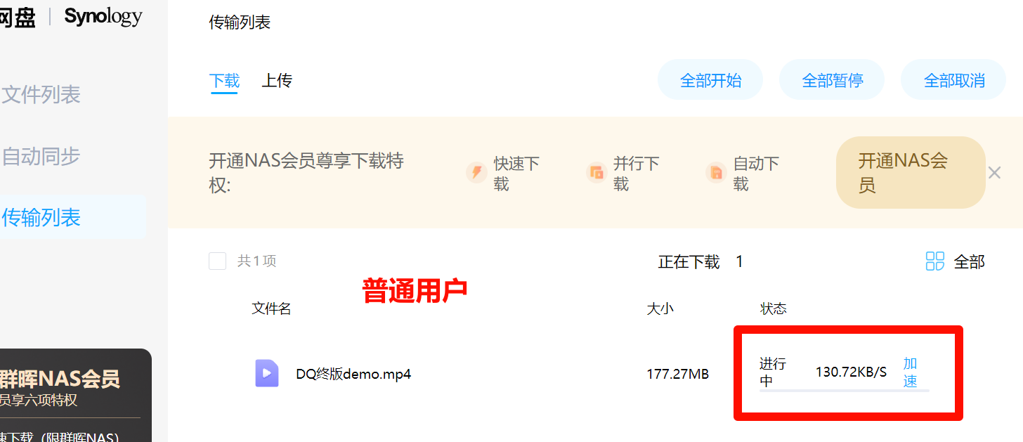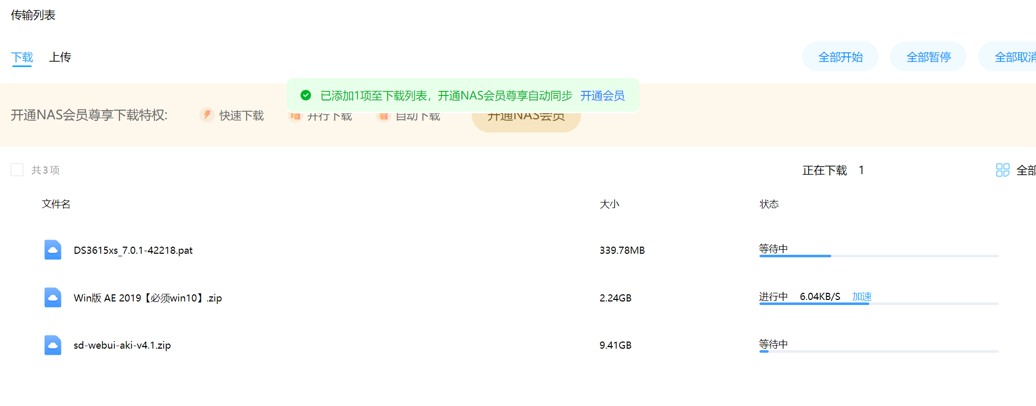 2、非NAS会员只能进行单任务下载,NAS会员可以进行三个任务下载。