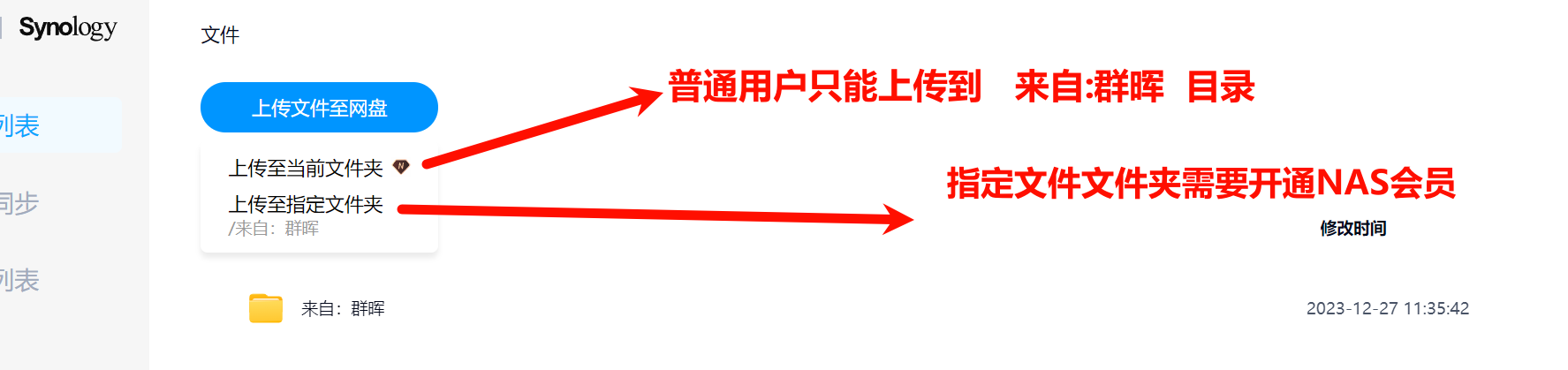 10、上传文件指定目录需要开通NAS专用会员,否则只能上传到指定目录。
