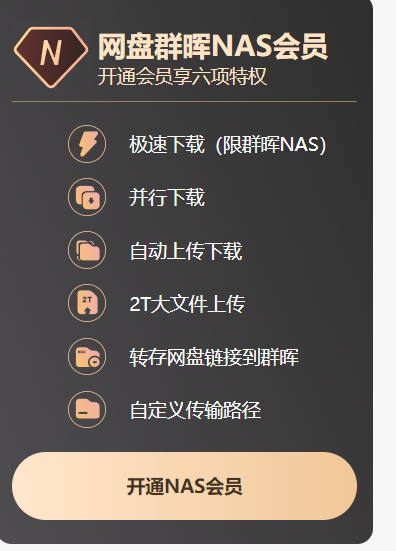 非会员用户使用体验较差,超级会员能满足一般下载上传需求不支持同步,WEB页面比较简洁,基本的上传、下载、同步主要NAS专用功能都有了,对于会员和超级会员来说比较难受了,如果想完整体验功能需要再单独付费79元,作为一个到26年才到期的svip8用户哭晕在厕所,如果没有开通百度云会员,并且百度云主要在NAS用,那么79一年价格看似比较实惠,但是NAS专用会员是不会增加额外空间的只有默认的100G,对于NAS云备份空间太小了,以上是本人对百度云套件的全部体验,本篇文章到此结束,咱们下一片文章见。