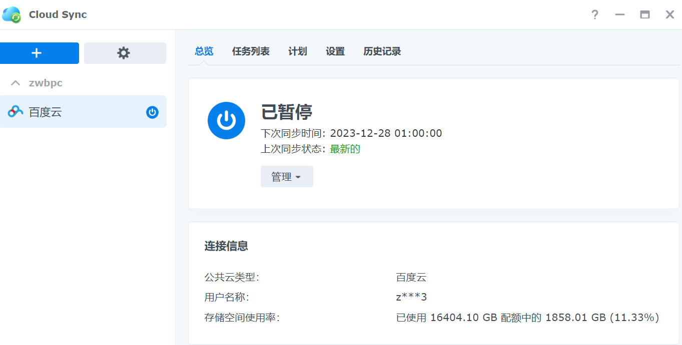 cloud sync是群晖官方的一款公有云同步套件,很长的一段时间内我都通过此套件将我NAS的重要数据加密备份到百度云来作为一份云端备份保障,当然cloud sync如果想获得和百度云不错的同步使用体验也需要开通百度云会员,否则速度和普通用户一样。