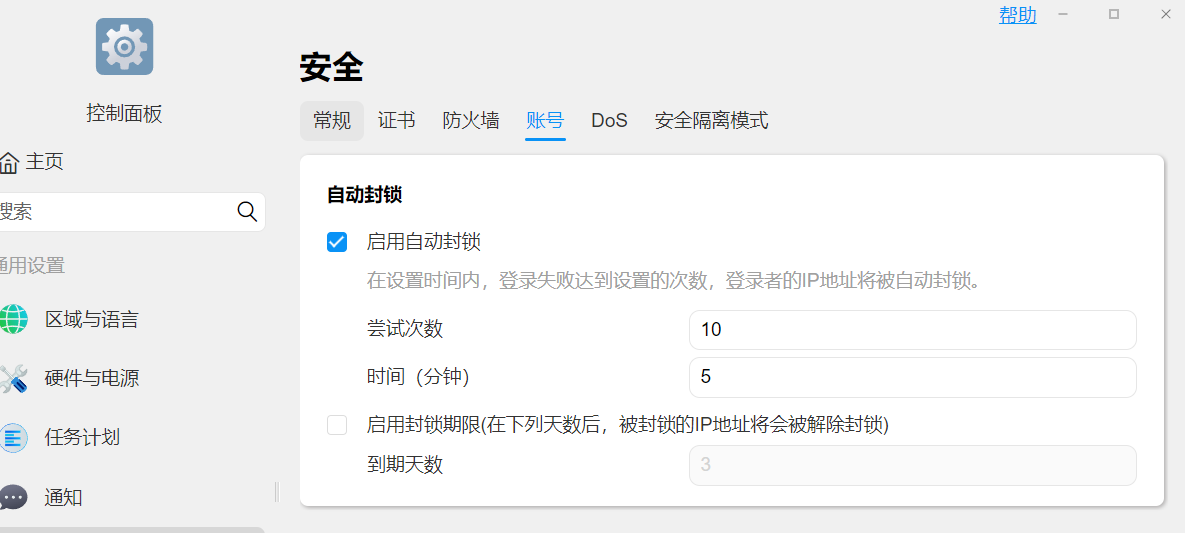 3、如果有外网使用需求,可以在安全中配置防火墙、证书、Dos等来提高NAS的外网访问安全性。