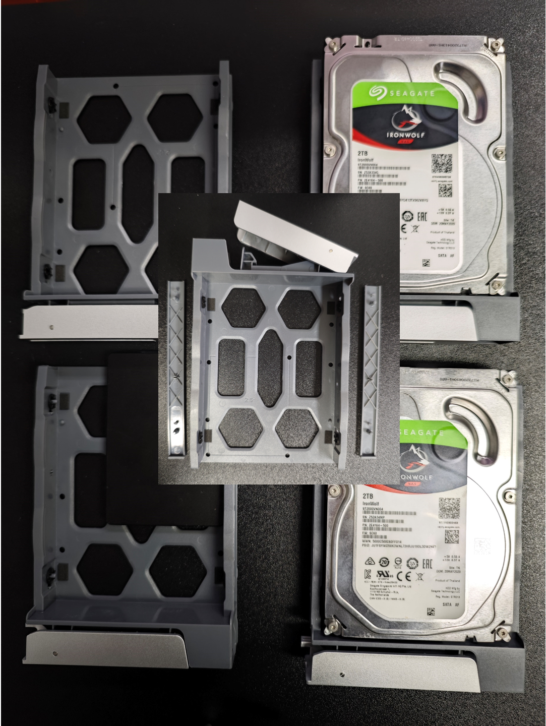 8、硬盘托架为塑料材质,采用快拆结构,安装3.5寸硬盘无需螺丝固定,只需要使用两边的固定板即可,同时支持2.5寸硬盘。