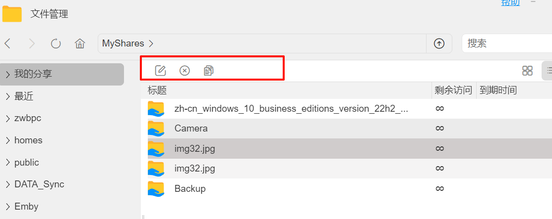 6、对于分享过的文件可以在我的分享目录进行管理。
