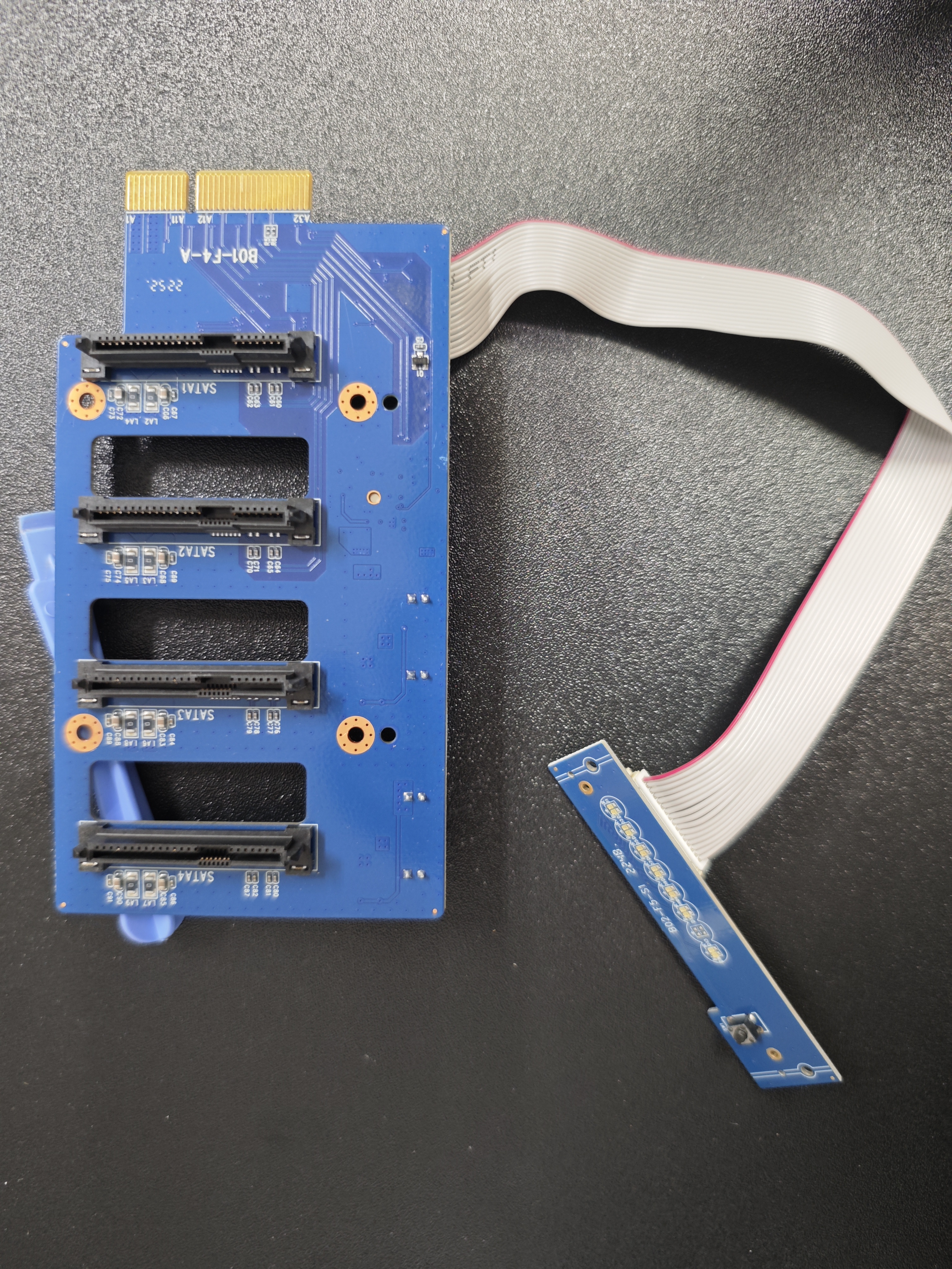 5、硬盘转接板和前面板使用排线连接,接口处有胶水覆。