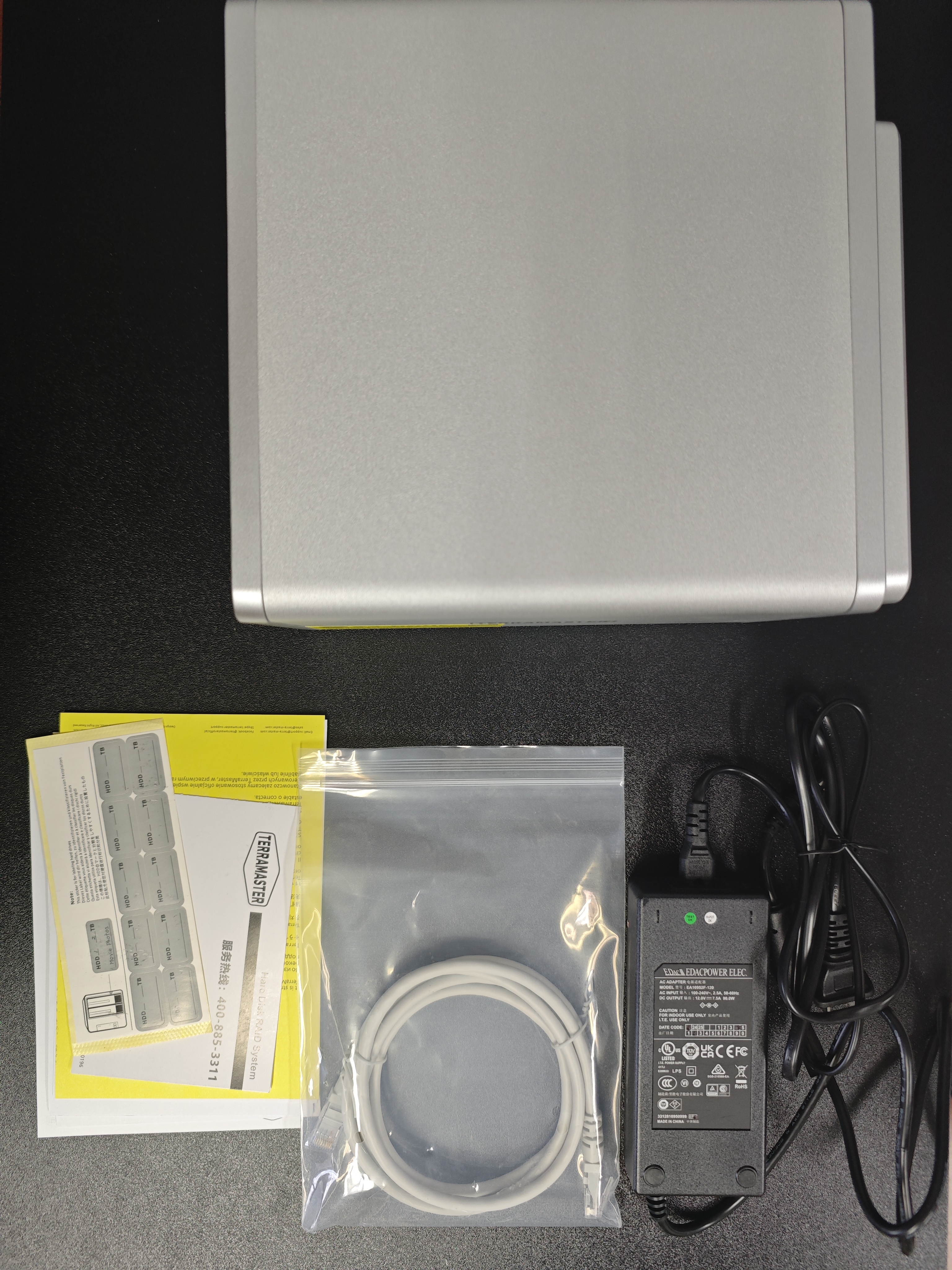 1、F4-423拆开包装环节就略过了,全部配件如下,主机、电源、一个网线、说明书等纸质材料。