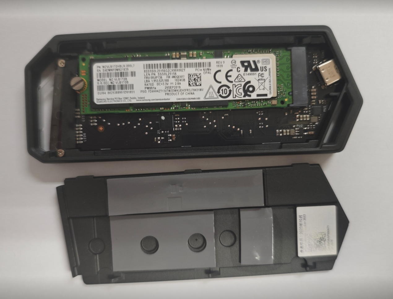 2、本次测试硬盘使用的是三星PM981A,虽然是PCI3.0硬盘,但是对于测试此硬盘盒足够了,AS SSD测试如下。