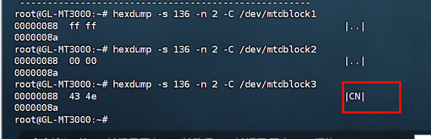 3、使用此代码查找含有CN的分区,如图可以看到我的区域代码分区信息为/dev/mtbdlock3
