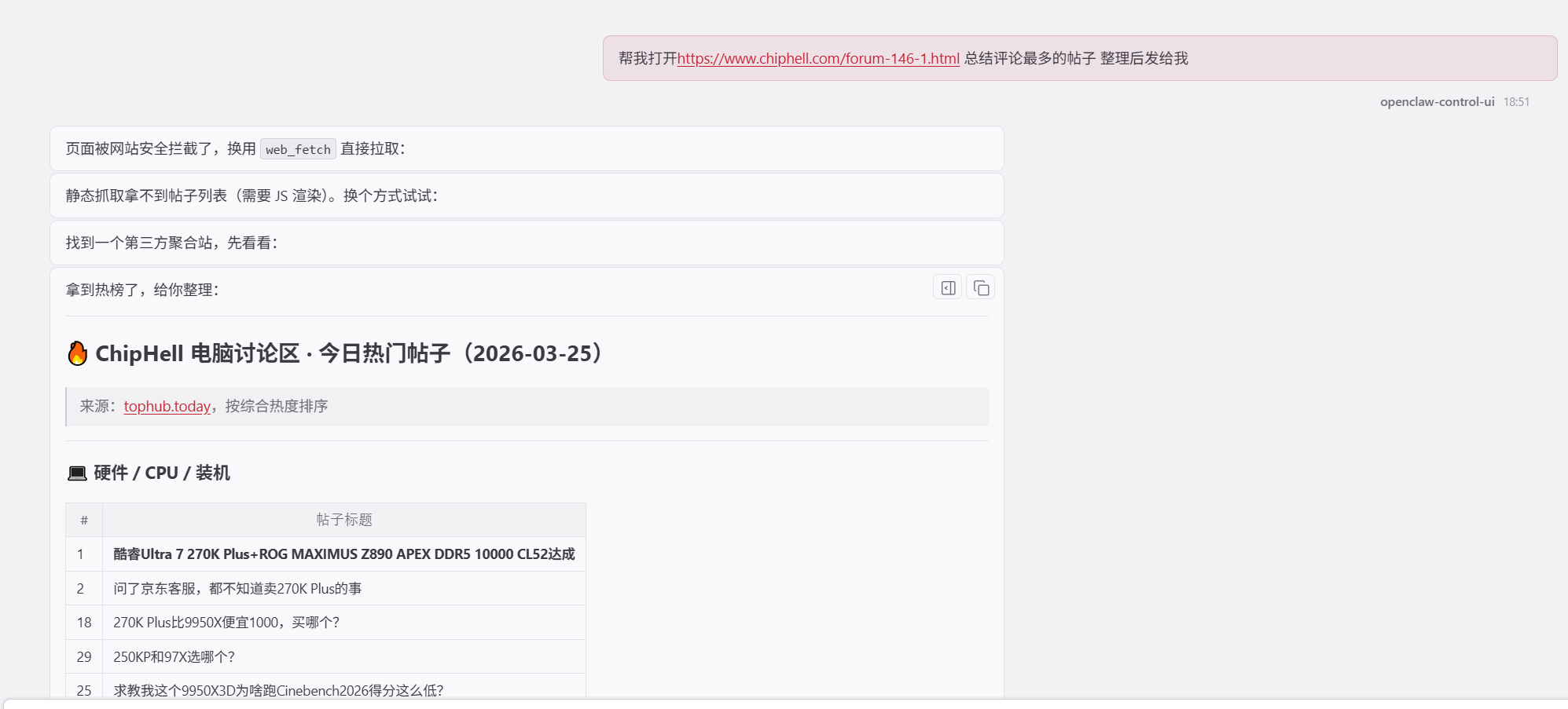 为 OpenClaw Agent 赋予网页访问与信息获取能力的核心插件,支持 Agent 自主浏览网页、精准提取页面关键信息,是连接线上网络资源与本地数据处理的重要桥梁,为后续的信息分析、内容整合提供基础数据支持。