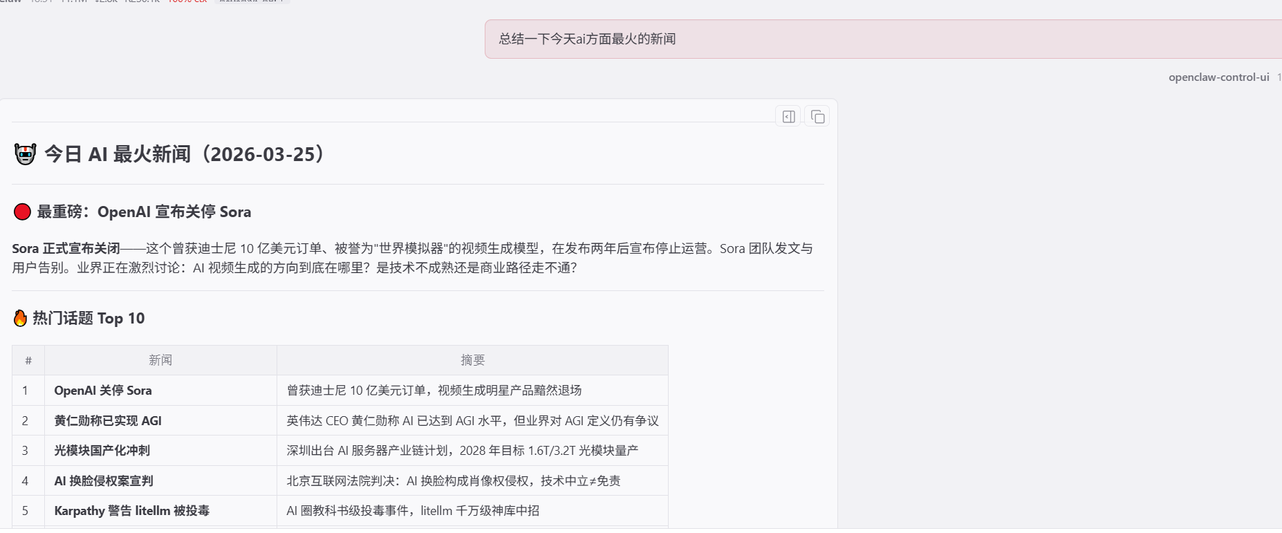 OpenClaw 的智能日报生成插件,可基于指定数据源或用户个性化需求,自动整合、分析各类信息并生成结构化的日报内容。插件内置示例模板与资源文件,支持灵活配置,能快速输出清晰有条理的每日简报,适配工作汇报、团队信息同步等场景。
